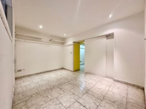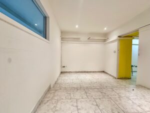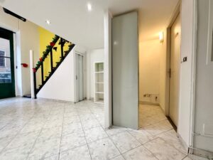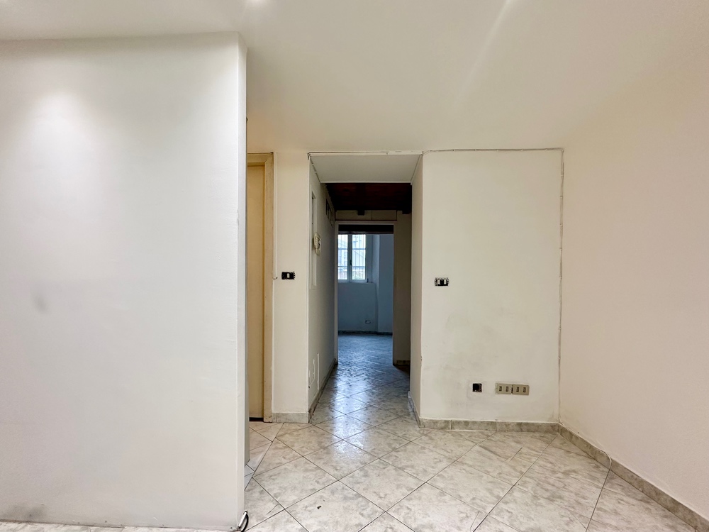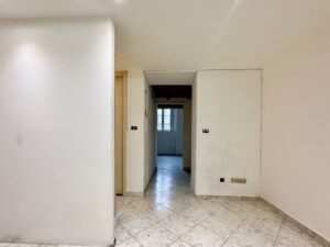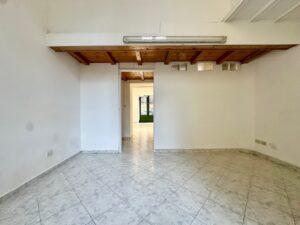 L’ingresso conduce al primo ambiente, seguito da bagno e ripostiglio in posizione centrale; proseguendo si accede a un secondo locale con ulteriore ingresso dalla corte interna, soluzione funzionale anche per carico/scarico o gestione separata degli spazi.