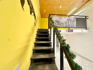 Una comoda scala interna porta alla zona soppalco, composta da due ambienti separati e ben fruibili, ideali come uffici, area operativa o deposito.