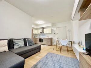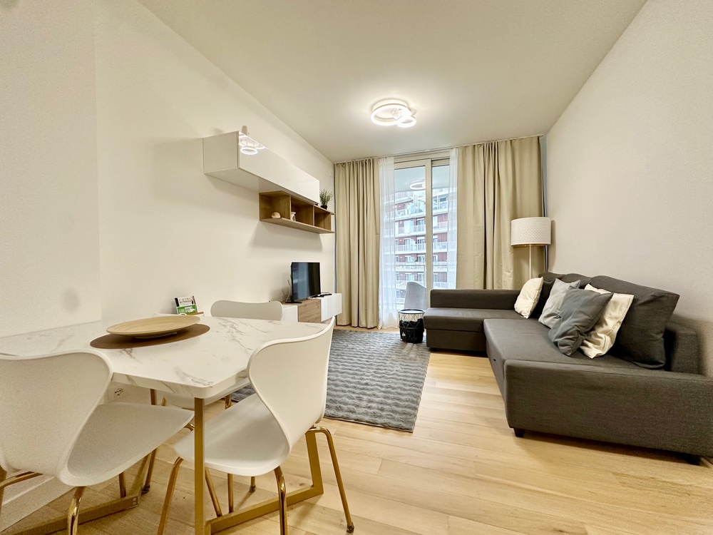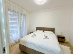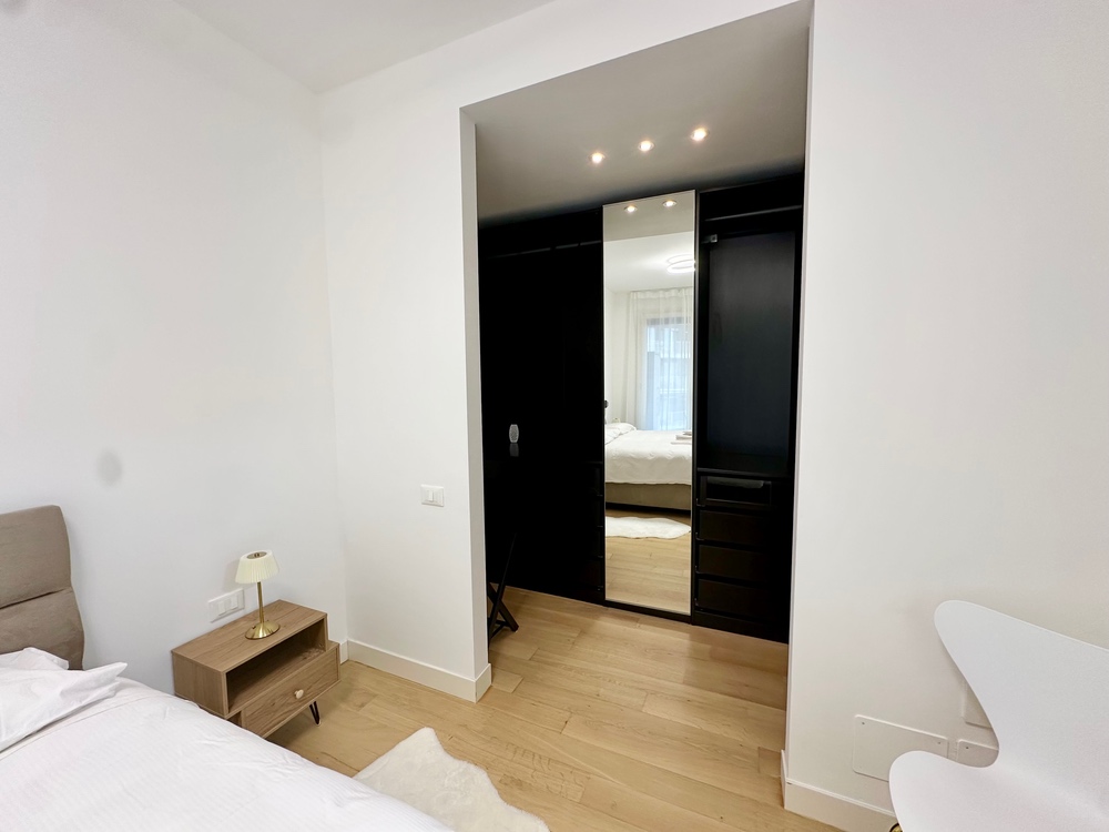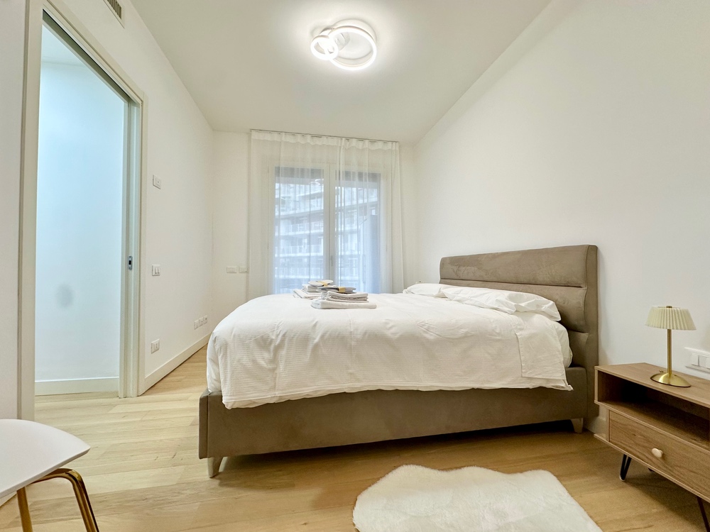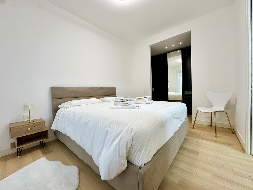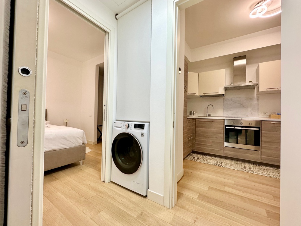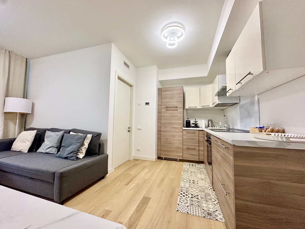 Benvenuti nella dimora di Marti&Emma: bilocale in ottime condizioni, situato al terzo piano con doppi ascensori, composto da ingresso, soggiorno con cucina a vista con divano letto matrimoniale, camera matrimoniale con cabina armadio, bagno completo e terrazzo.