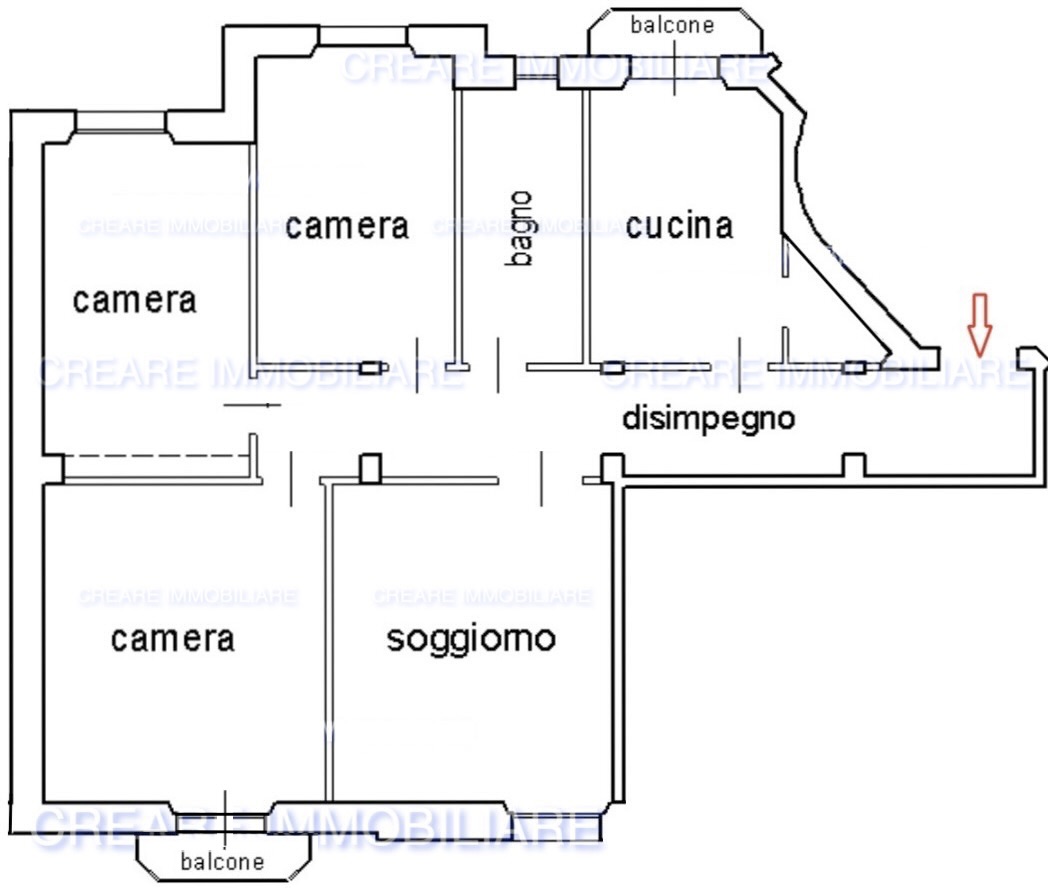 Il taglio razionale e i pochi vincoli strutturali offrono molteplici possibilità di ridistribuzione degli spazi, con possibilità di ricavare un secondo bagno.
